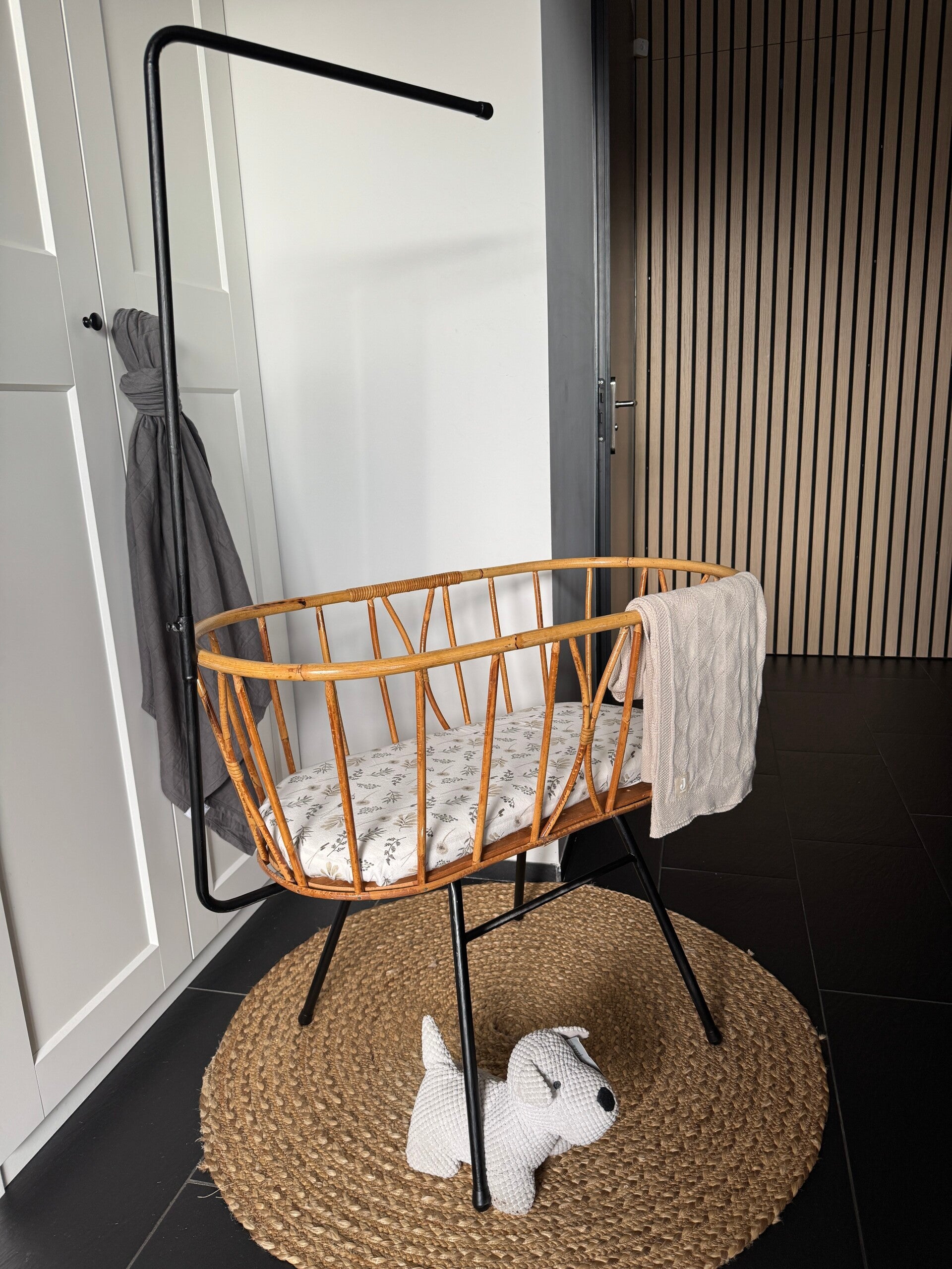 Rotan wiegje met hemelstok en sluier